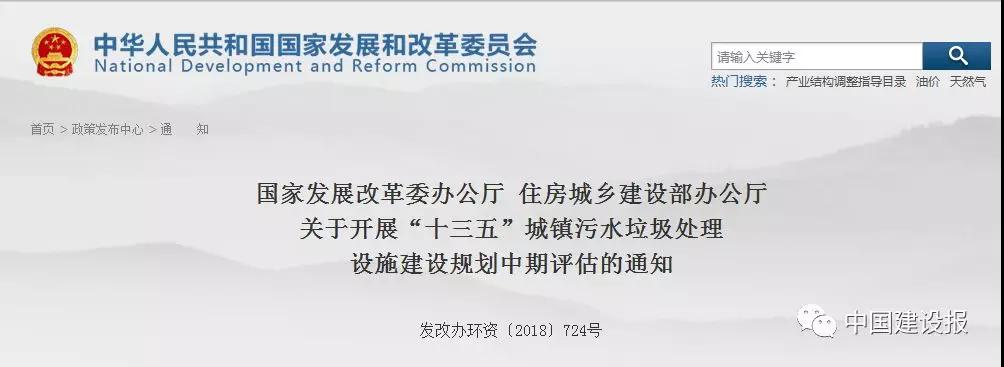 日前,国家发展改革委办公厅、住房城乡建设部办公厅印发《关于开展“十三五”城镇污水垃圾处理设施建设规划中期评估的通知》。根据通知,两部门决定对《“十三五”全国城镇污水处理及再生利用设施建设规划》和《“十三五”全国城镇生活垃圾无害化处理设施建设规划》开展中期评估,并对评估任务、评估时限、评估内容、评估方法等作了详细说明。根据发改规划〔2018〕238号文件,评估最终形成的报告,履行相关程序后,将提交全国人大常委会审议。